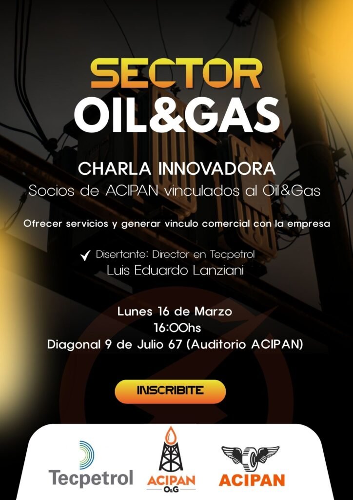ACIPAN lo invita a participar de una charla informativa a realizarse el día Lunes 16 de Marzo a partir de las 16:00hs a cargo de Tecpetrol en Diagonal 9 de Julio 67 (Auditorio ACIPAN).